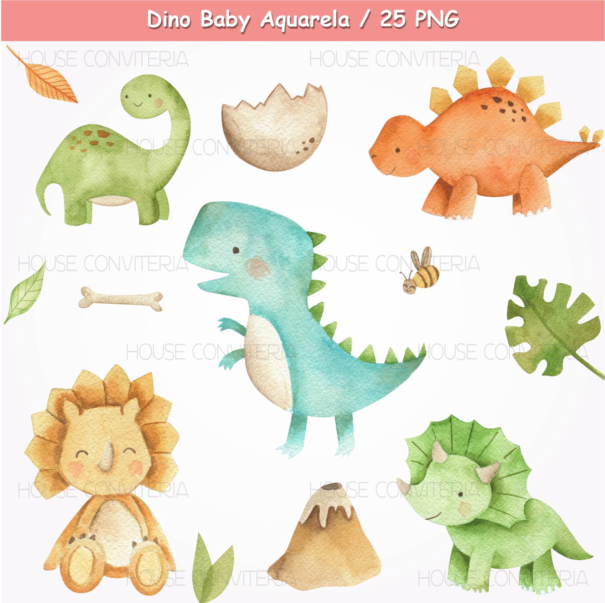010 – Kit Digital Dino Baby Aquarela – (pague 1 Leve 2)