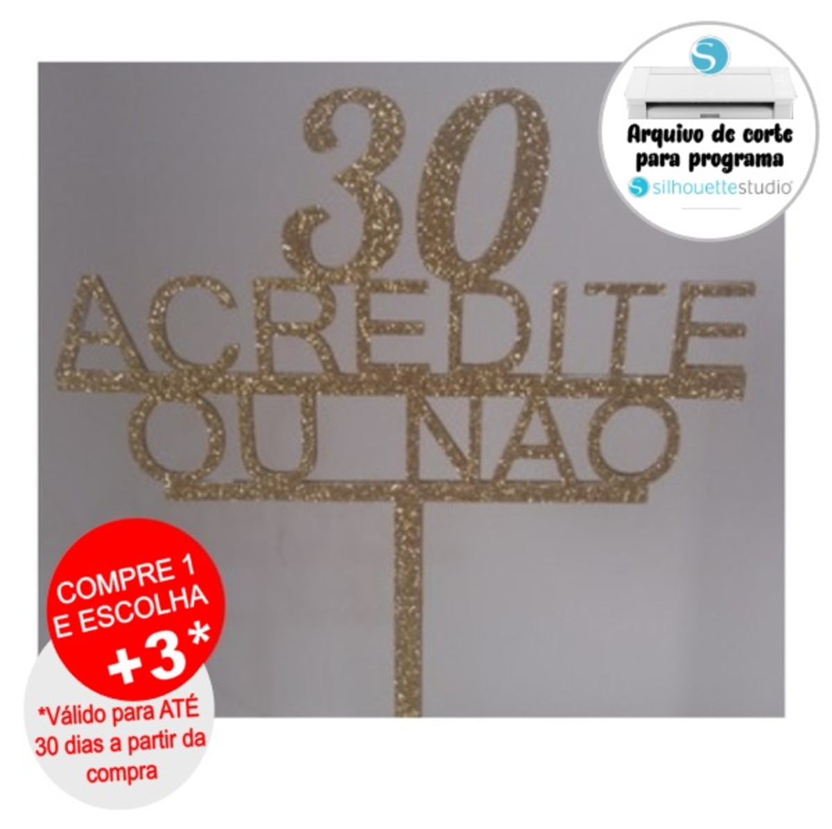 Arquivo de Corte Topo de Bolo 30 Acredite ou Nao