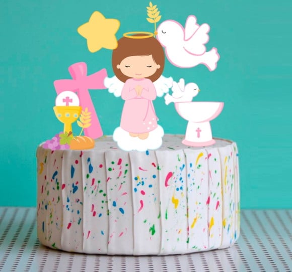 Topo de Bolo Batizado Menina Arquivo pdf para Impressão